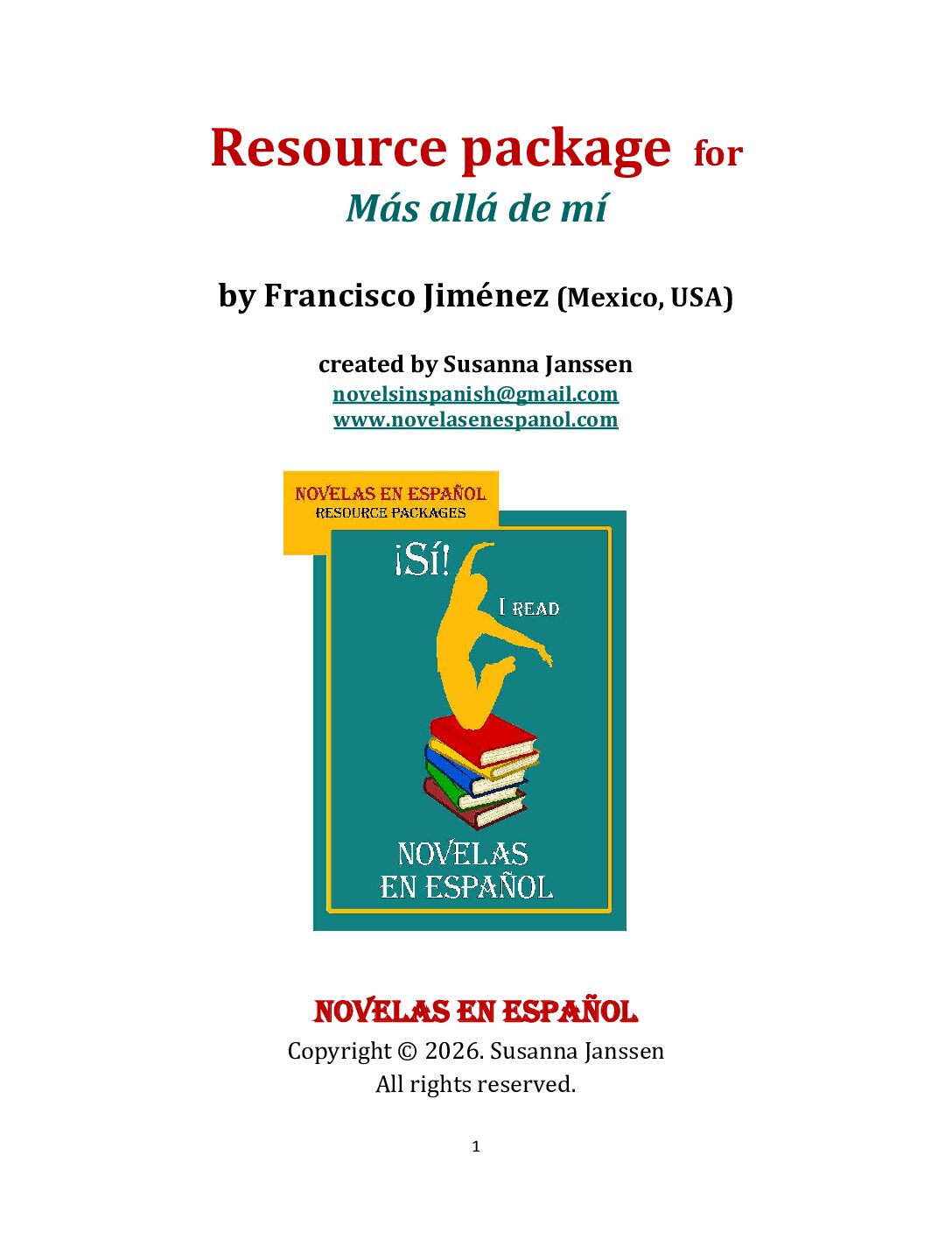 * Only the resource packages for the novels are sold on this site. Here is a link to the print edition of Más allá de mí that corresponds to the resource package pages. To purchase a novel, please visit your favorite book seller. If you have any difficulties obtaining this novel, just contact me and I’ll be happy to help you source a copy.